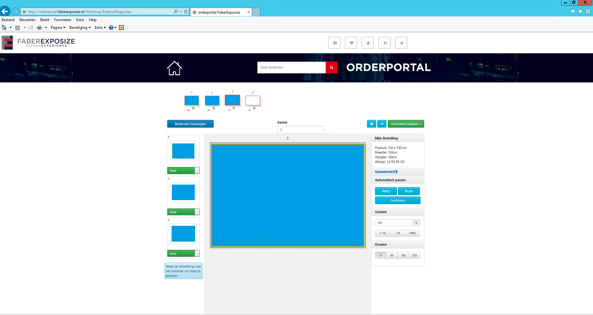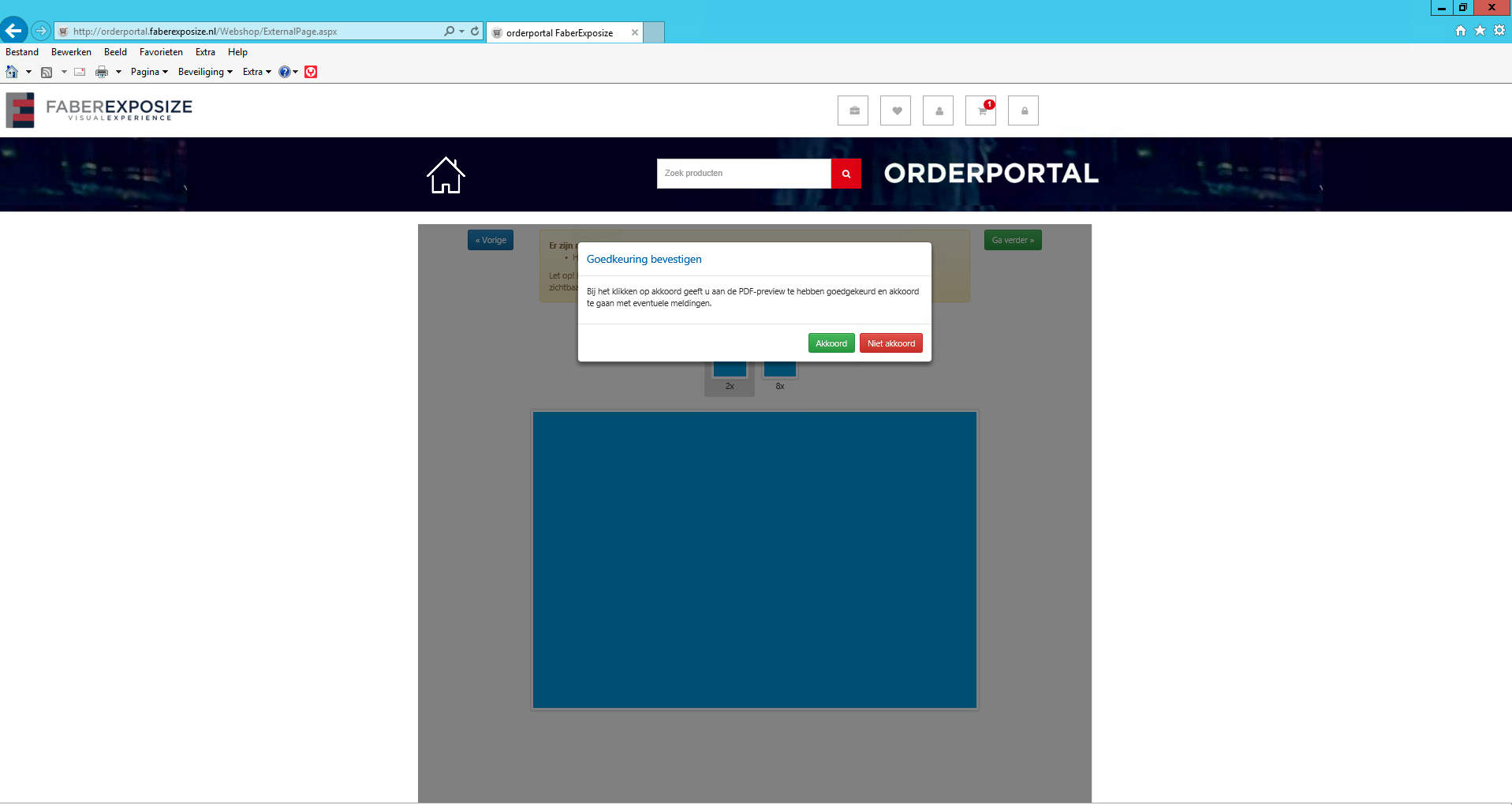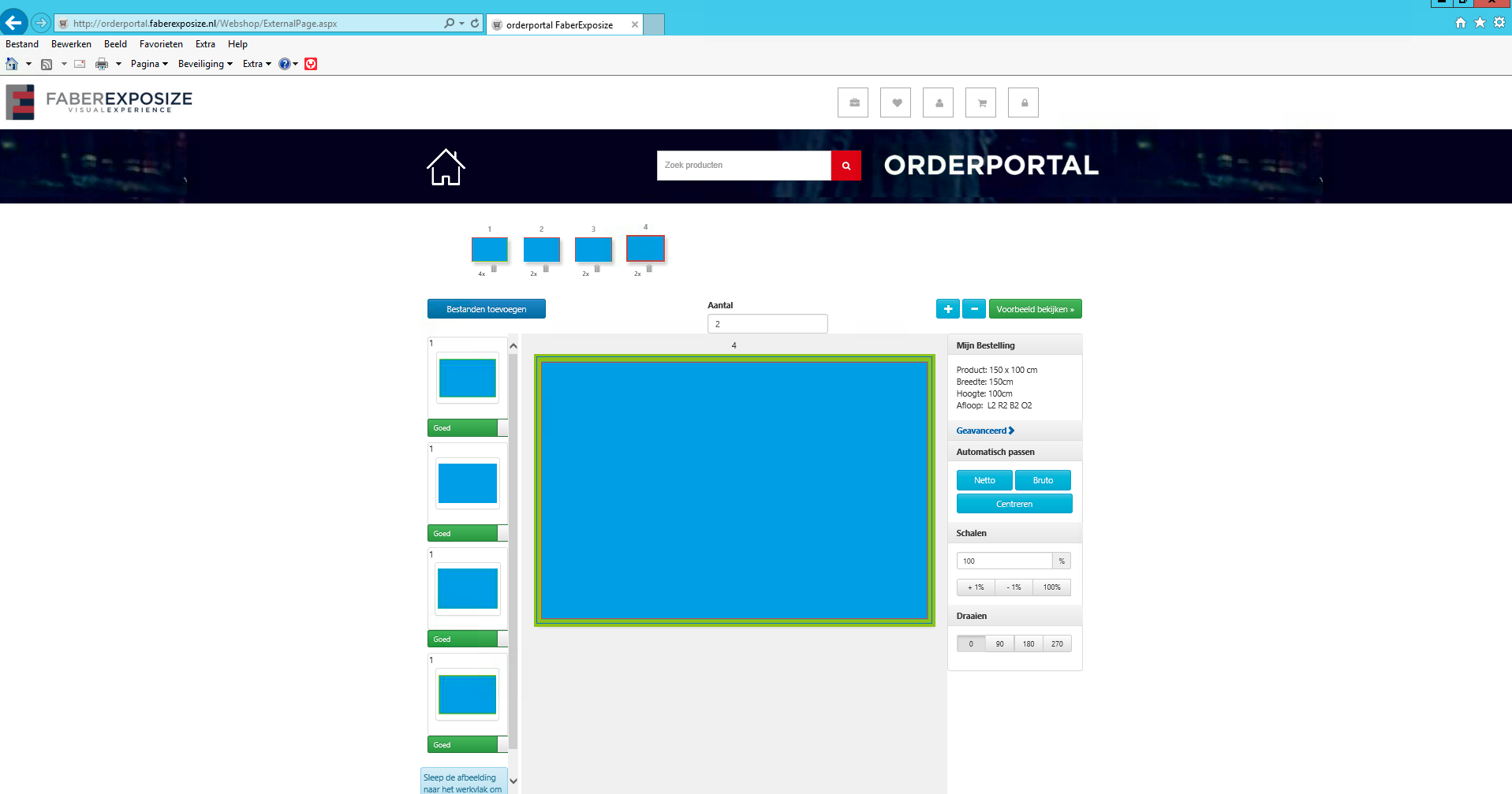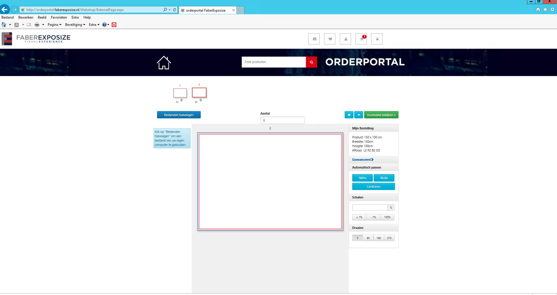 Wanneer alle bestanden geupload zijn en gekoppeld aan de ontwerpen (=pagina’s) klikt u op voorbeeld bekijken.