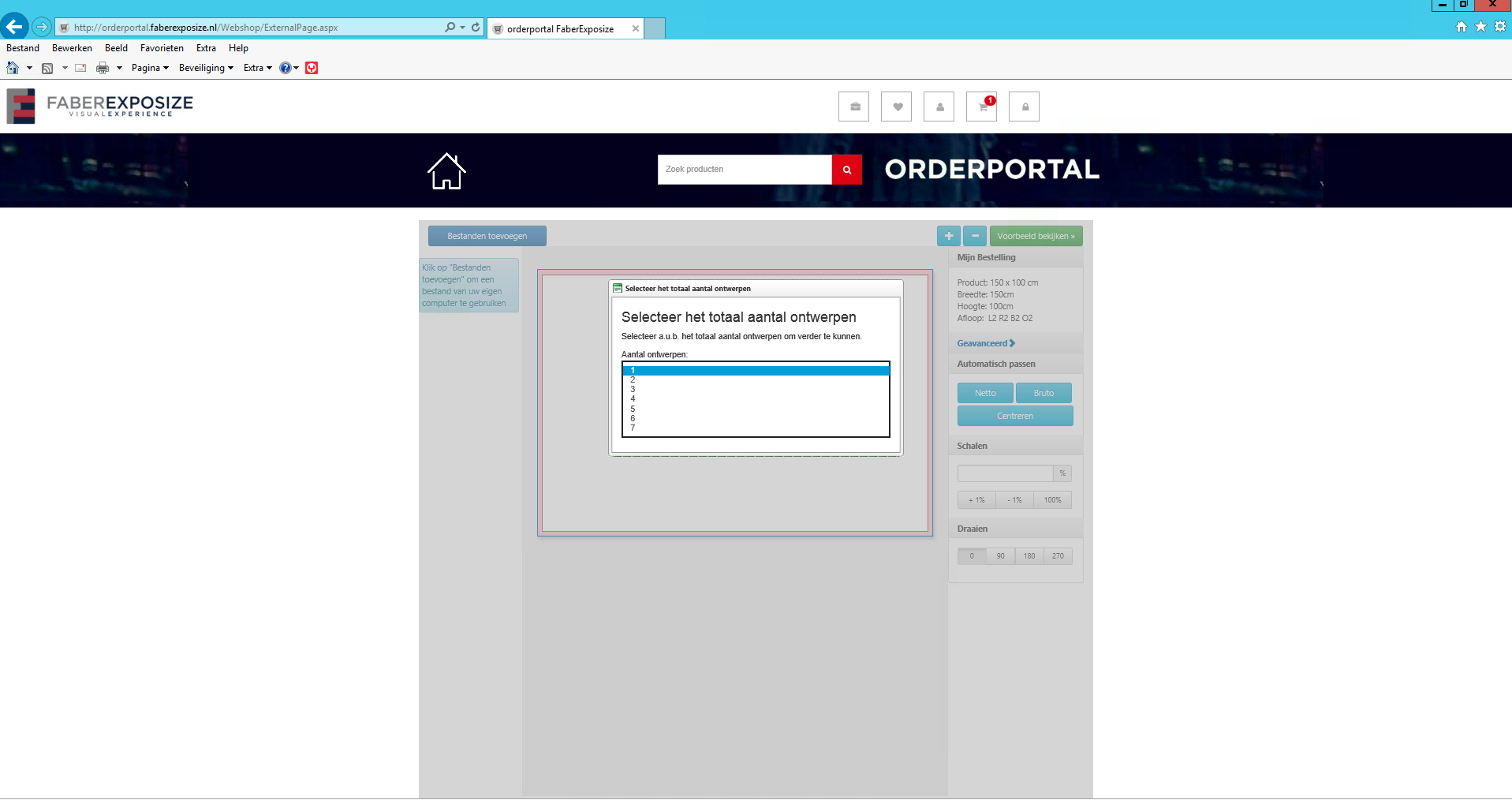 Na het selecteren van het aantal unieke ontwerpen (1-8) start de uploadmodule op.