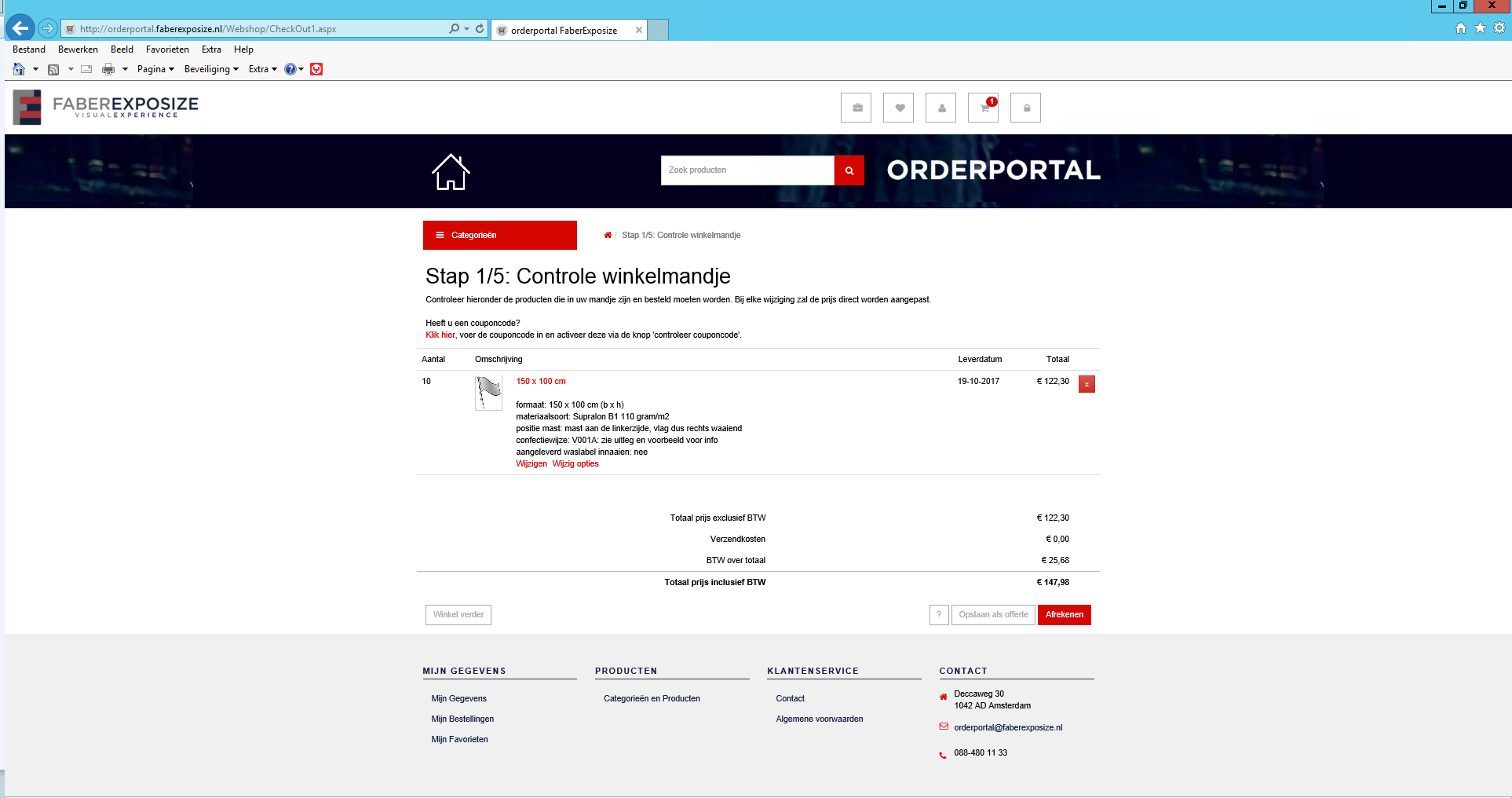 Uw bestelling ligt vervolgens in het winkelmandje.